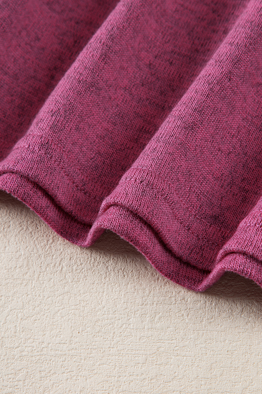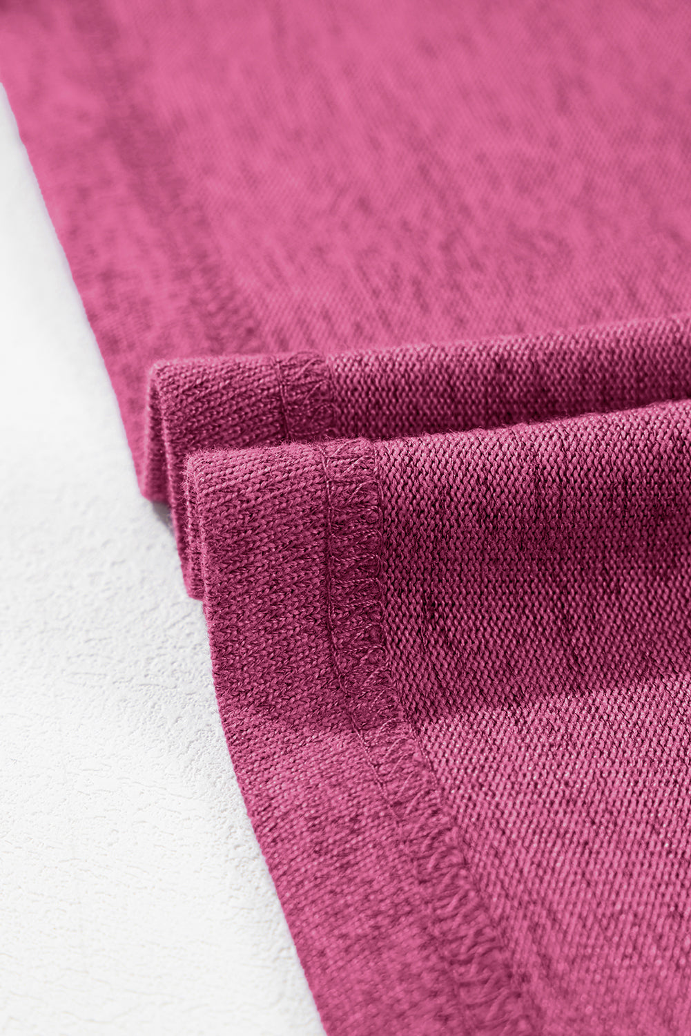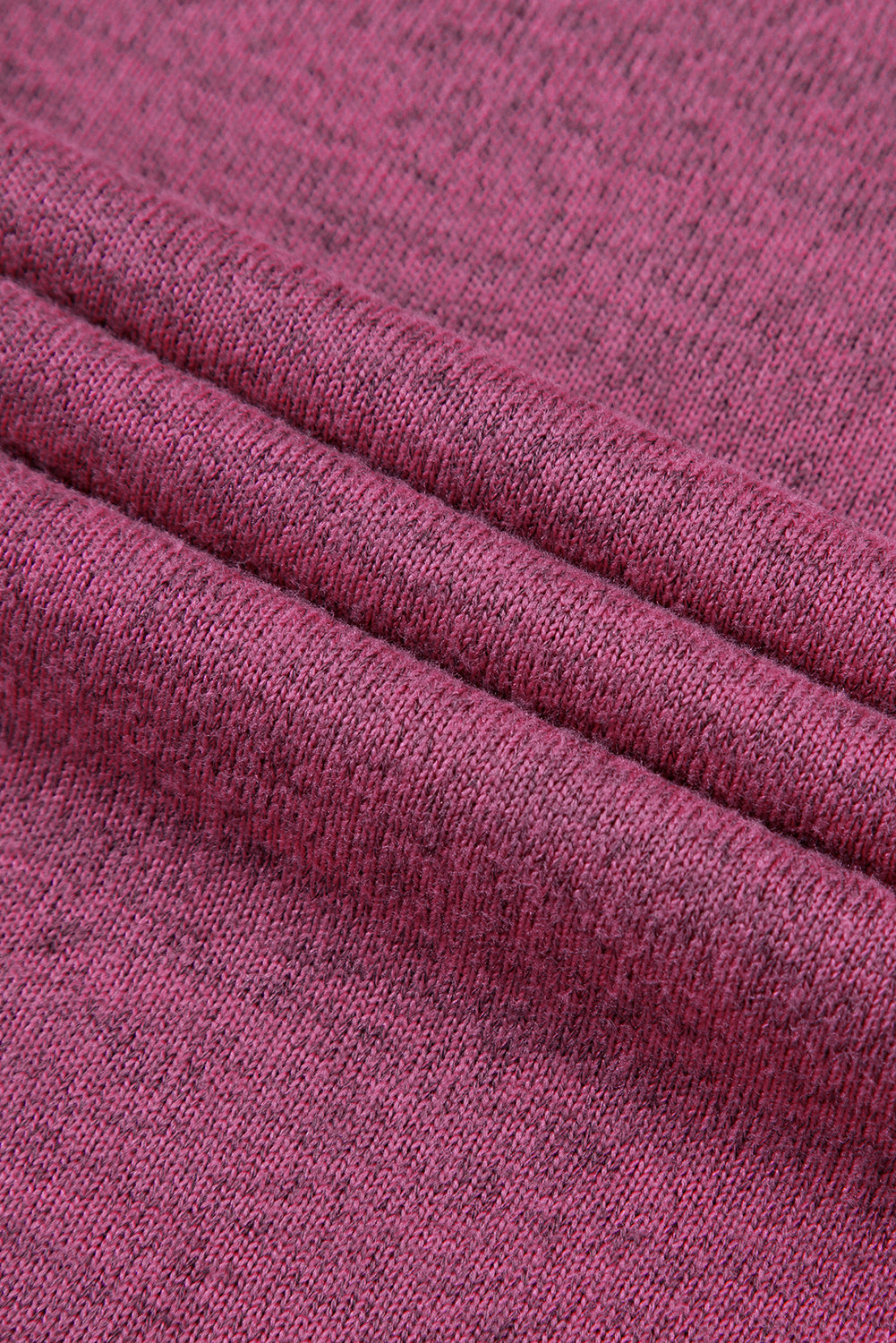 Bright Pink Ribbed Splicing Sleeve Round Neck T-shirt