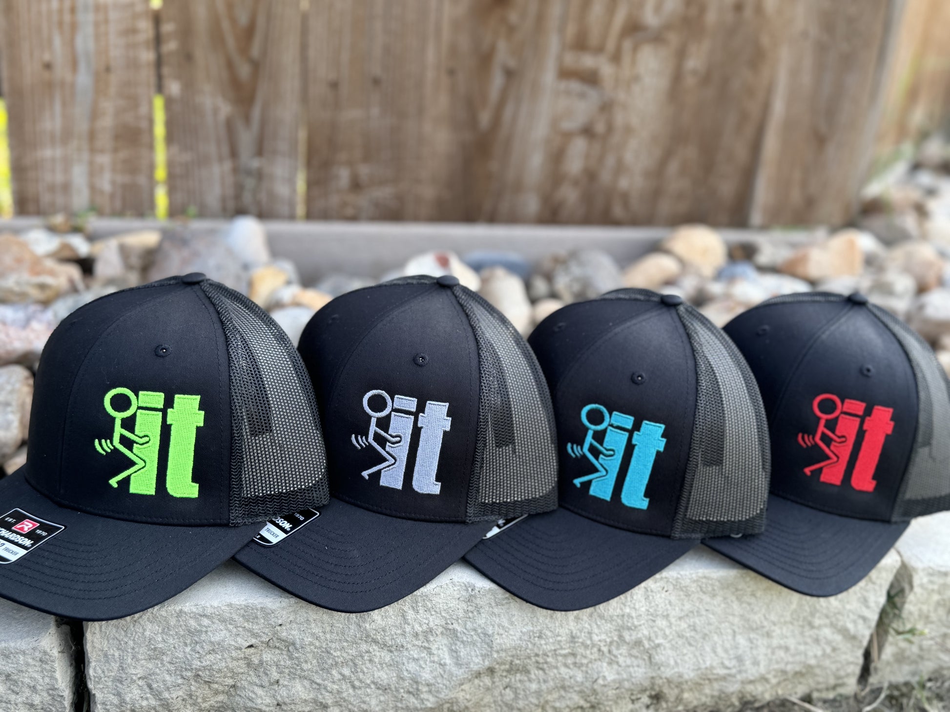 Comes on a black Richardson 112 Snapback mesh back cap.