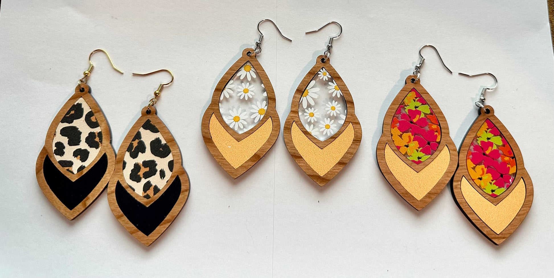 The perfect addition to those cute summer outfits! These earrings are made out of wood and acrylic and hang 2.5 inches
