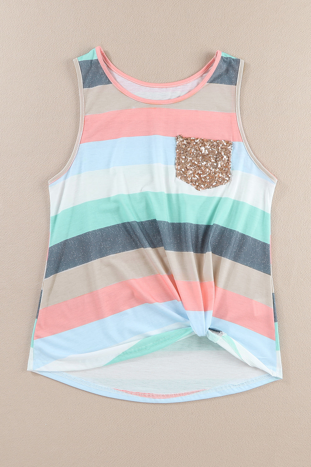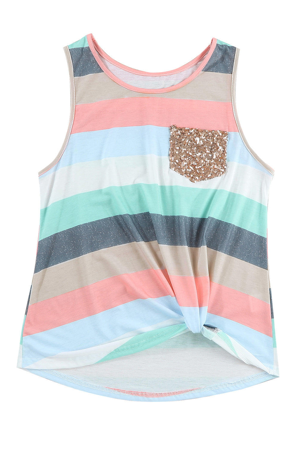 Multicolor Sequin Pocket Patchwork Striped Tank Top