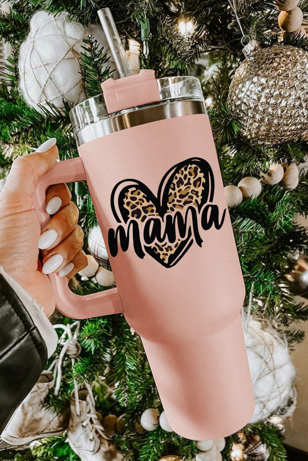 Pink mama Leopard Heart Shape Stainless Steel Insulate Cup 40oz
